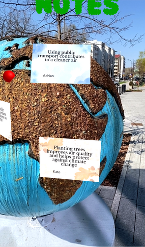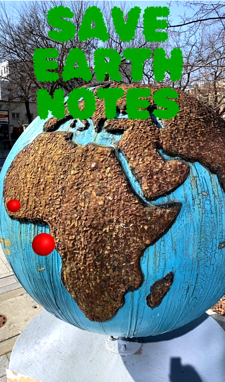 Save Earth Notes is an interactive WebAR experience that transforms a real-world Earth-shaped object into a digital message board for climate action.